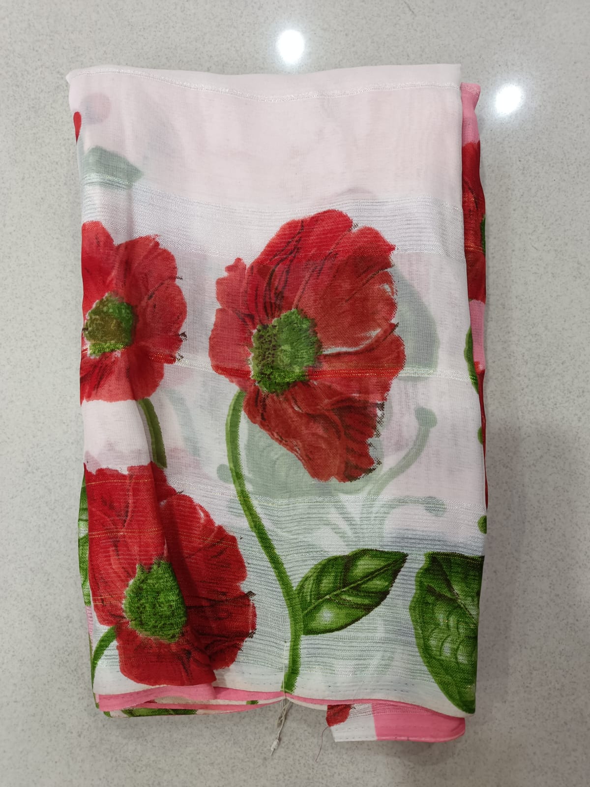 Linen Digital Printed Saree with flowers and