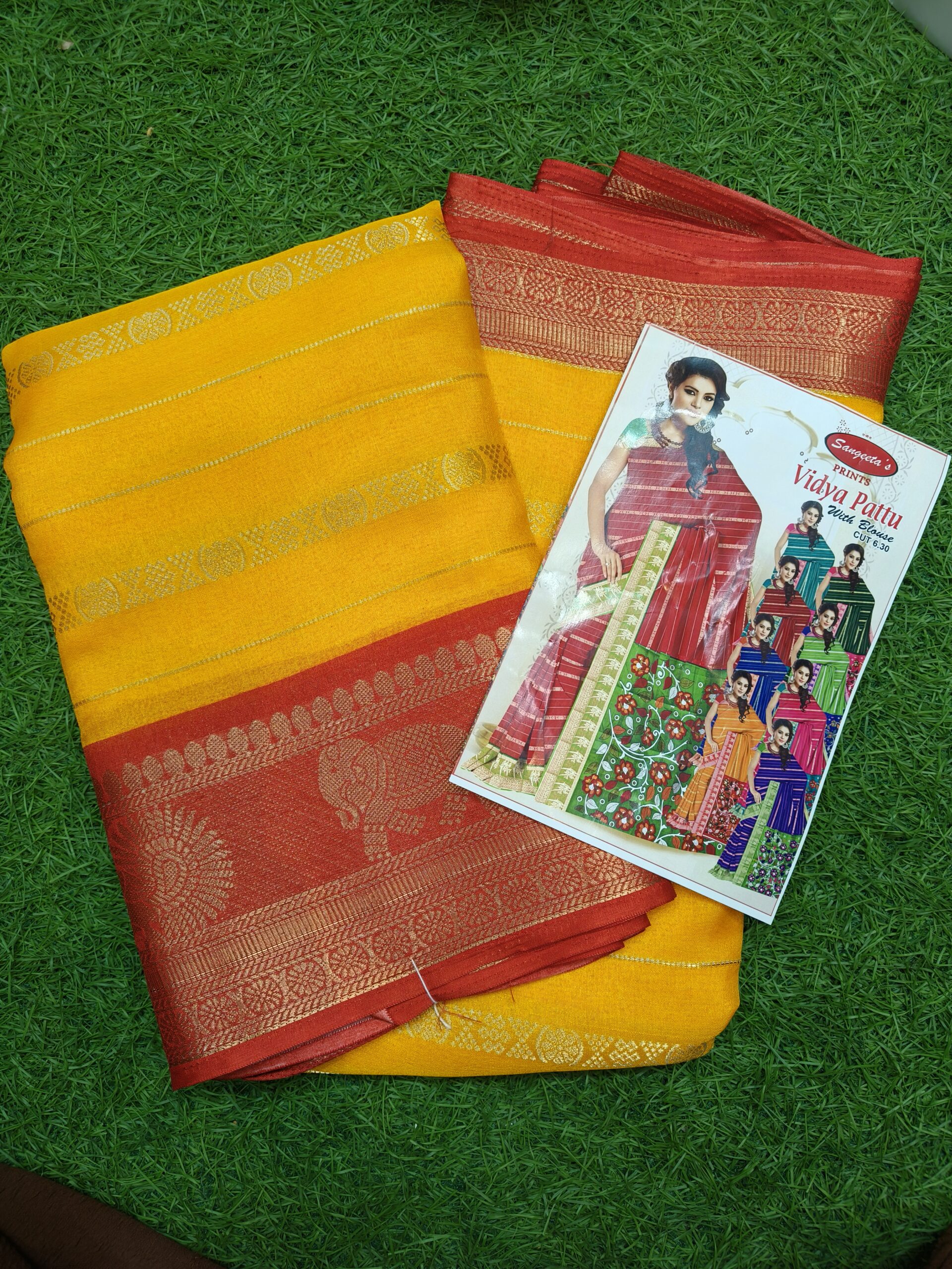 Mustard Yellow & Red Cotton Silk Saree