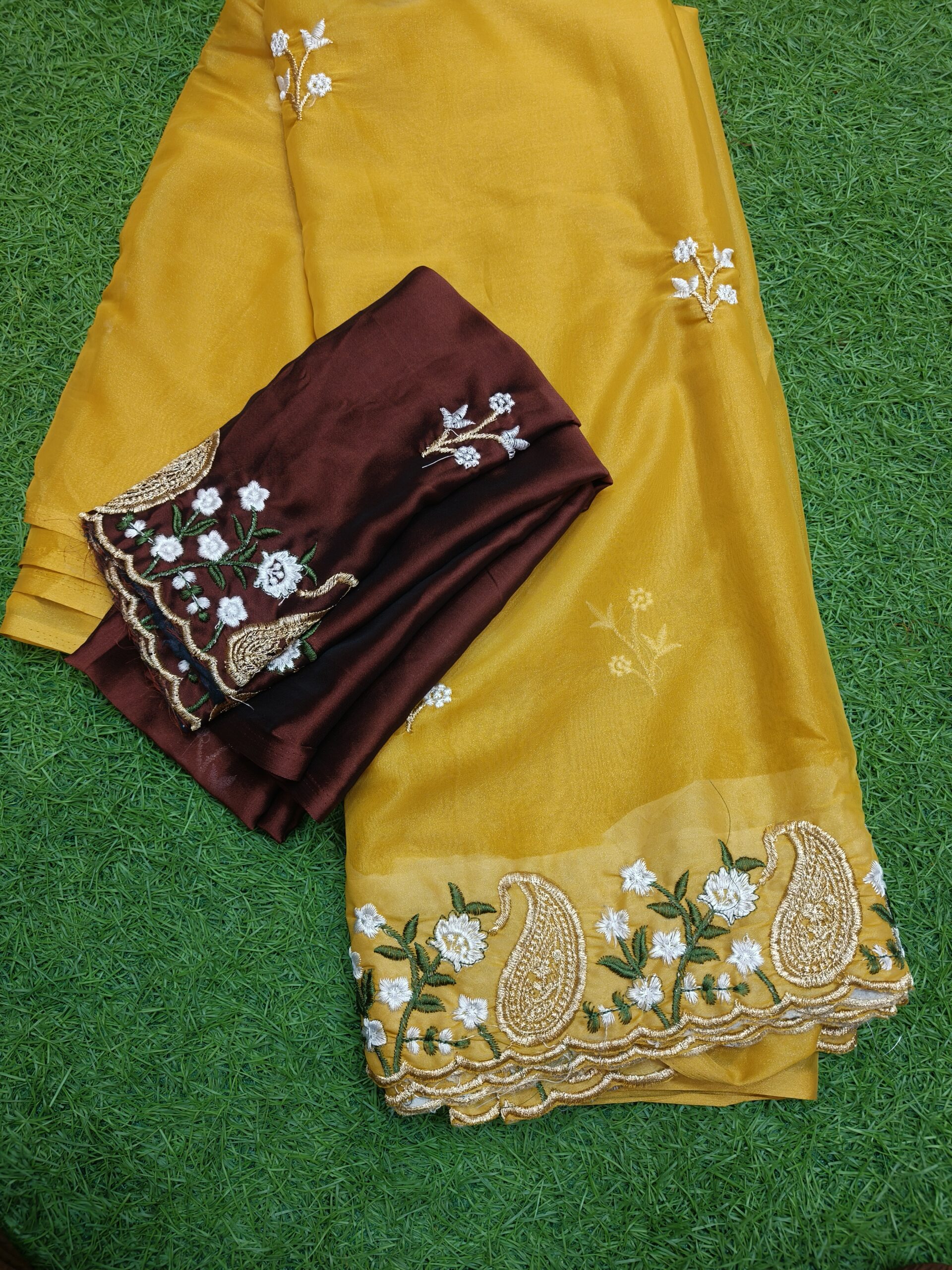 Be the first to review “Mustard Yellow saree with contrasting Maroon blouse”