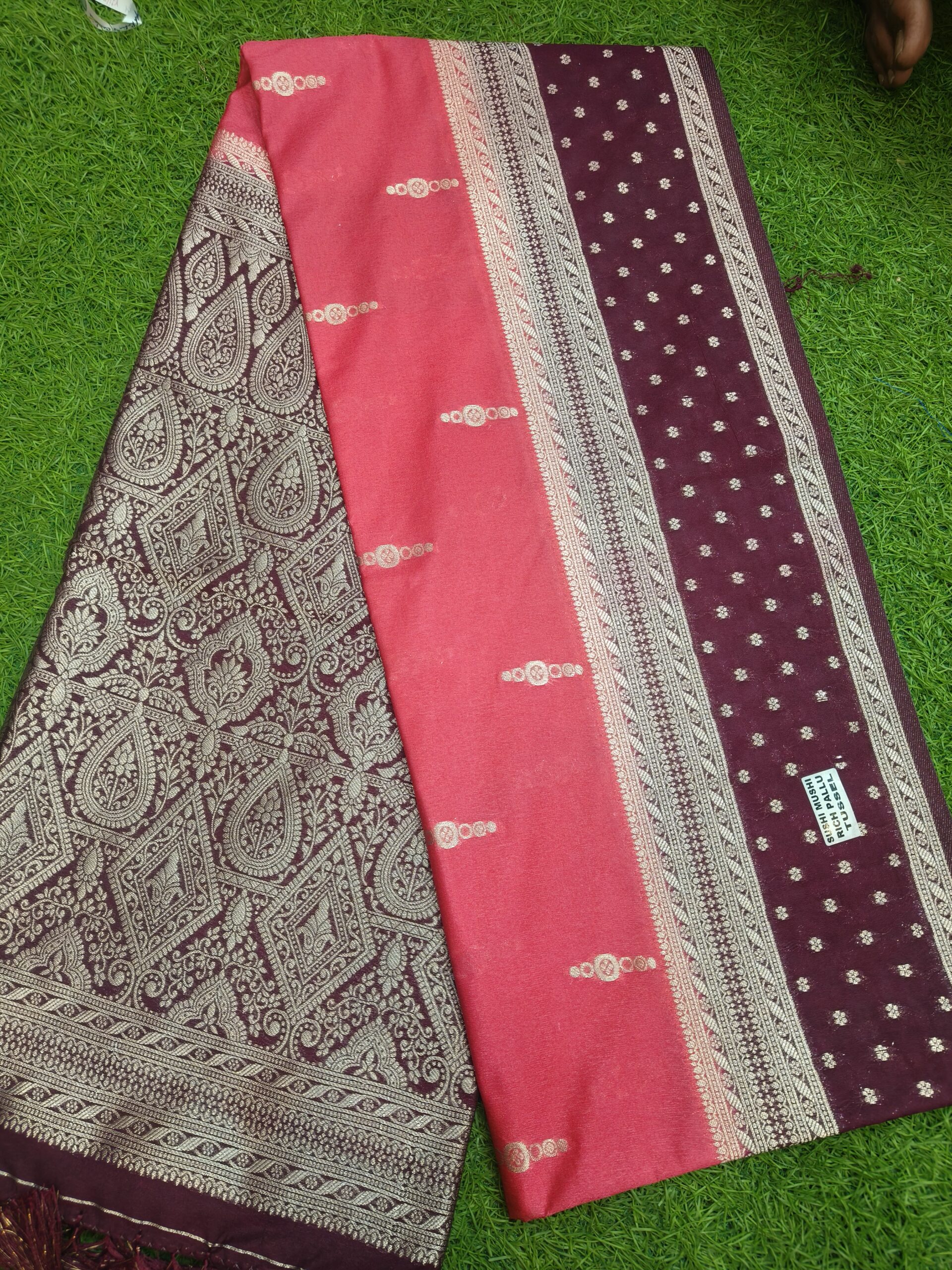 Elegant Two-Tone Silk Blend Saree with Rich Zari Border